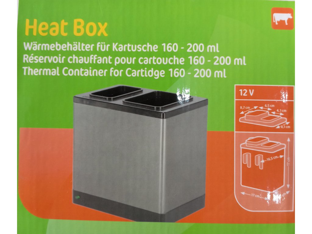 Ohřívač lepidla - 2 komory ohřívané díky termostatu na 20°C. Jedna ohřívací komora na aplikační pistoli s lepidlem a druhá na náhradní náplň. Díky vestavěnému termostatu je v komorách stálá teplota 20 °C.